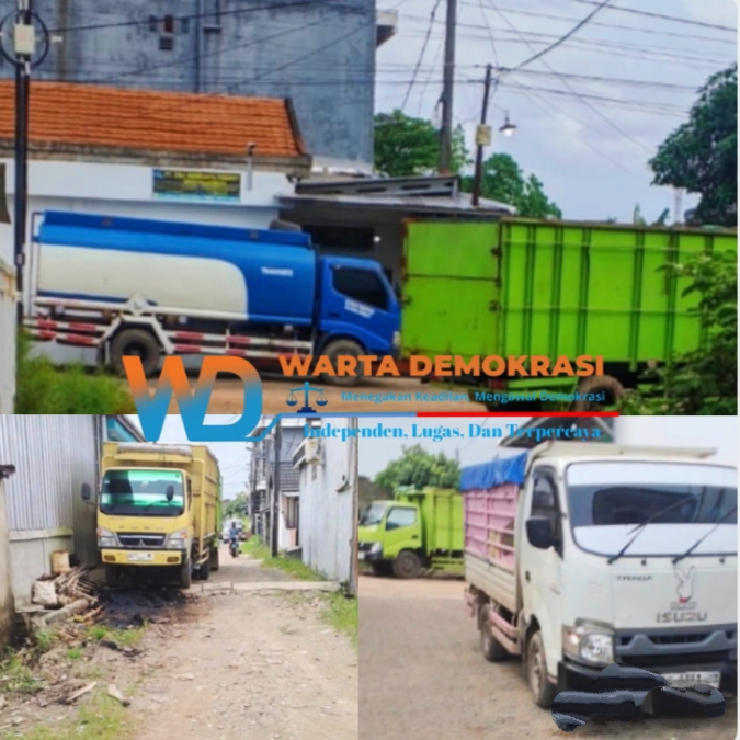 Berdasarkan pantauan langsung di lapangan serta dokumentasi foto, terlihat beberapa unit kendaraan mencurigakan, di antaranya mobil tangki berwarna biru-putih serta truk bak tertutup dan dump truck yang diduga telah dimodifikasi, keluar-masuk sebuah bangunan di area pemukiman sempit yang dikelilingi rumah warga.