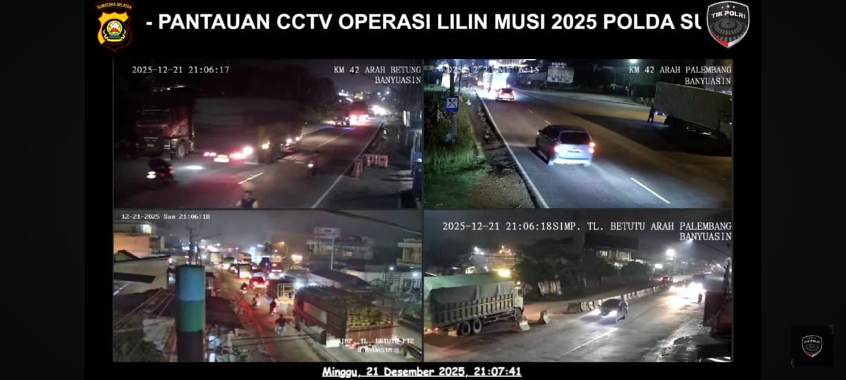 WartaDemokrasi, Palembang- Dalam rangka mendukung pengamanan arus Natal 2025 dan Tahun Baru 2026, Bidang Teknologi Informasi dan Komunikasi (Bid TIK) Polda Sumatera Selatan yang tergabung dalam Satgas Bantuan Operasi (Banops) Operasi Lilin Musi 2025 menghadirkan layanan pemantauan lalu lintas secara langsung melalui CCTV live streaming YouTube.