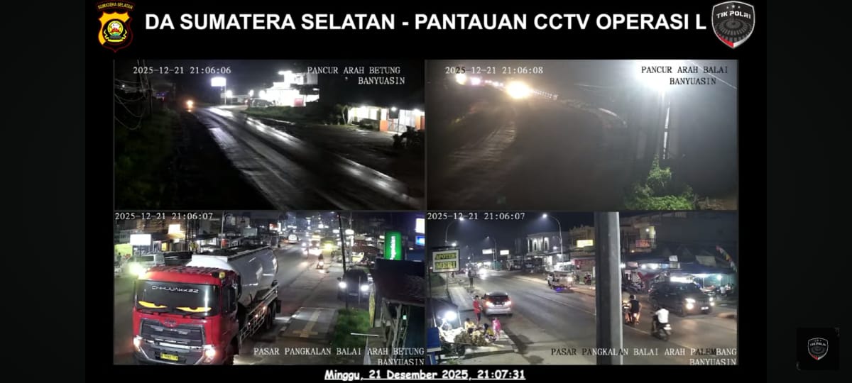 WartaDemokrasi, Palembang- Dalam rangka mendukung pengamanan arus Natal 2025 dan Tahun Baru 2026, Bidang Teknologi Informasi dan Komunikasi (Bid TIK) Polda Sumatera Selatan yang tergabung dalam Satgas Bantuan Operasi (Banops) Operasi Lilin Musi 2025 menghadirkan layanan pemantauan lalu lintas secara langsung melalui CCTV live streaming YouTube.