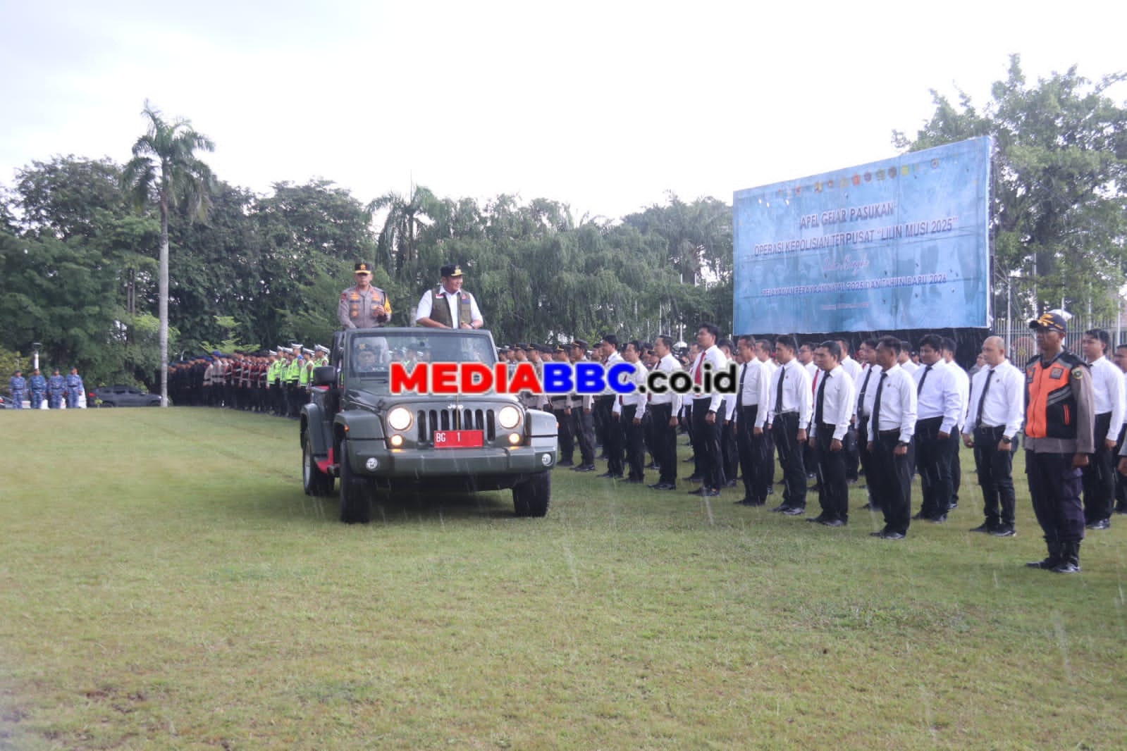 Apel gelar pasukan tersebut dipimpin langsung oleh Kapolda Sumsel Irjen Pol Andi Rian R. Djajadi, S.I.K., M.H., bersama Gubernur Sumatera Selatan Dr. H. Herman Deru. Seluruh peserta apel dari unsur TNI, Polri, serta instansi terkait tetap berdiri di lapangan mengikuti rangkaian kegiatan tanpa meninggalkan barisan, mencerminkan semangat pengabdian dan komitmen dalam menjalankan tugas negara.