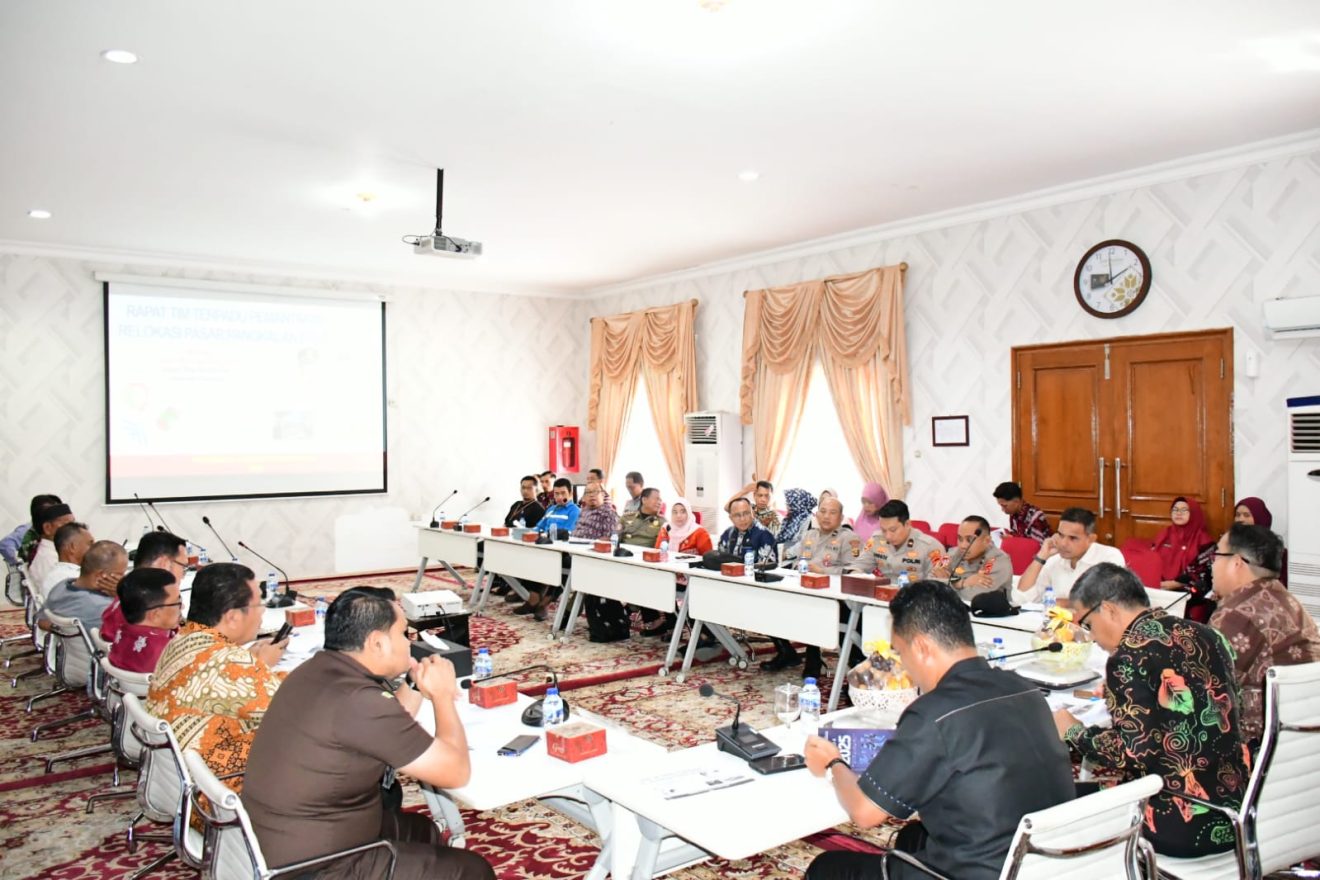 Rapat tersebut turut dihadiri para asisten, jajaran kepala OPD di lingkungan Pemkab Banyuasin, Forkopimda, camat, lurah, tokoh masyarakat, serta perwakilan pedagang.