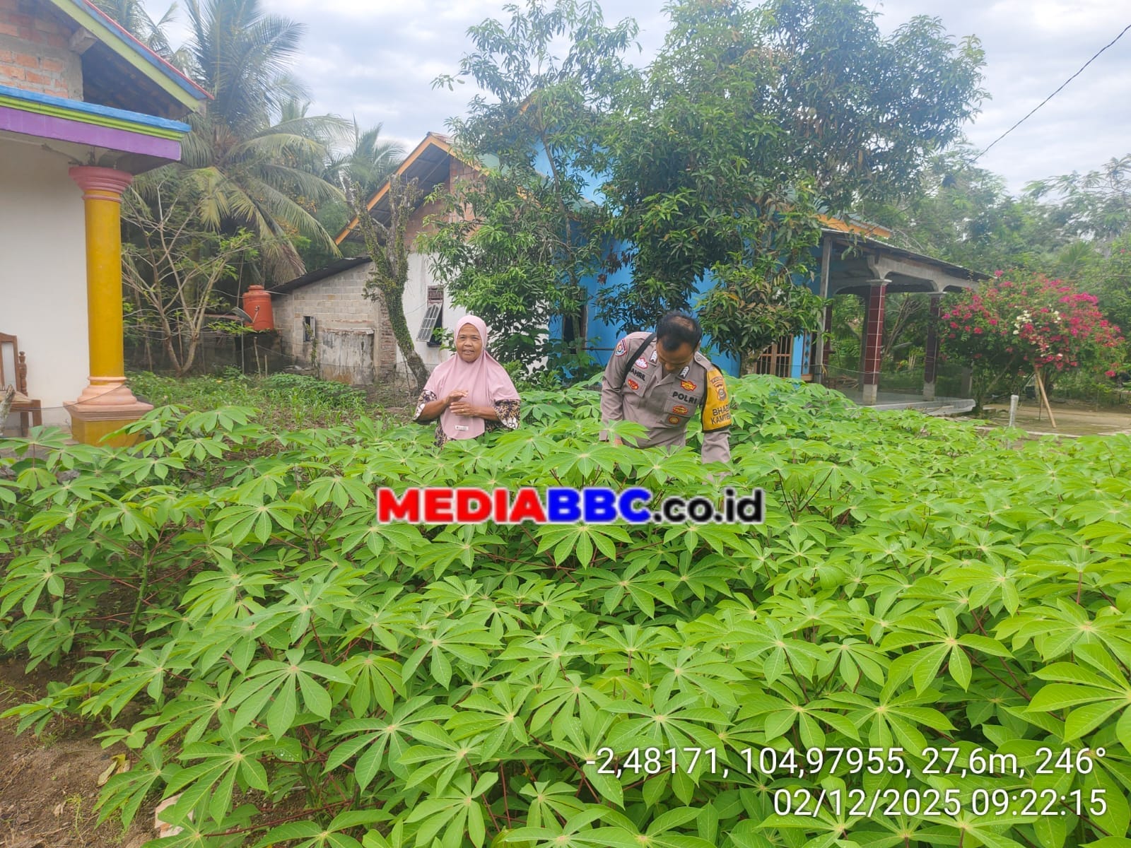 Namun yang dilakukan Bripka Sahril bukan sekadar imbauan. Ia hadir langsung di lahan milik seorang warga, Tarjo, yang menanam komoditas singkong di area seluas 30 meter kubik.